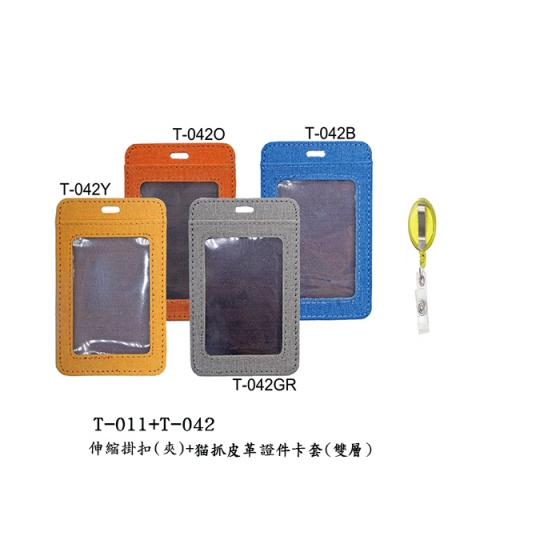 伸缩挂扣(夹)+猫抓皮革证件卡套